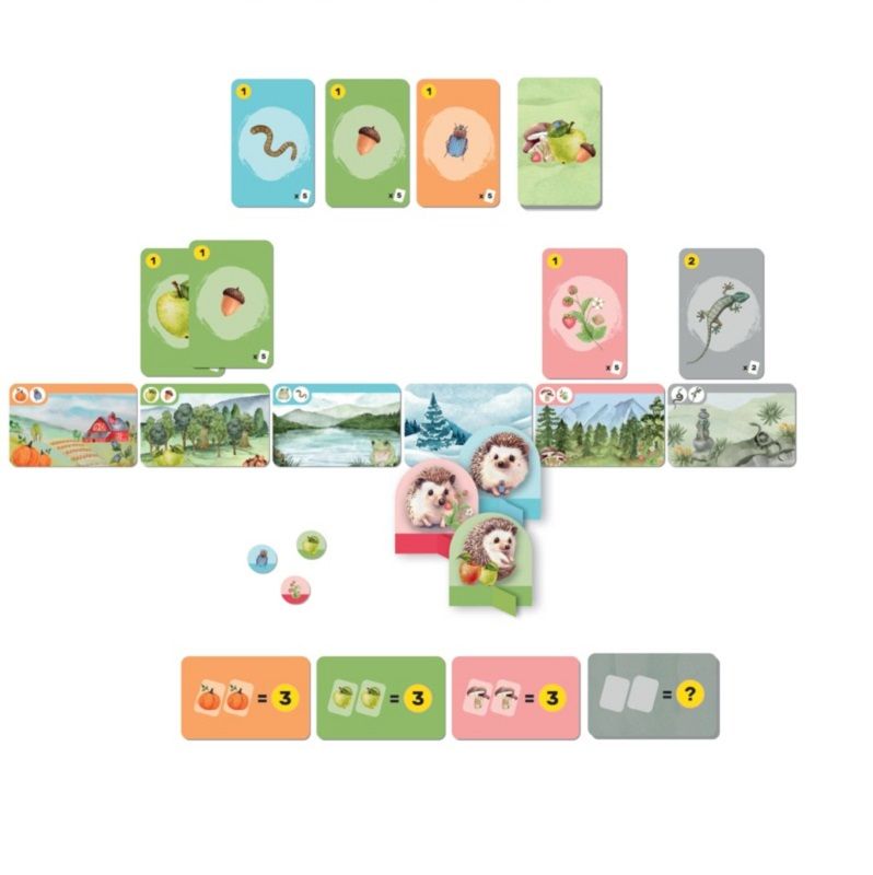 Подреждате карти с местности и разкривате карти с храна. На своя ход трябва да извършите 3 действия (различни или от един вид) от следните: местене, ядене, взимане на карта с цел, избутване на друг таралеж. След всеки ход разкривате нова карта с храна. Ако дойде зима трябва да пожертвате 2 от изядените карти с храна. Играта приключва, когато свършат картите с храна. Смятат се точките от храна, любима храна и карти с цели, а играчът с най-разнообразното меню печели допълнителни точки.