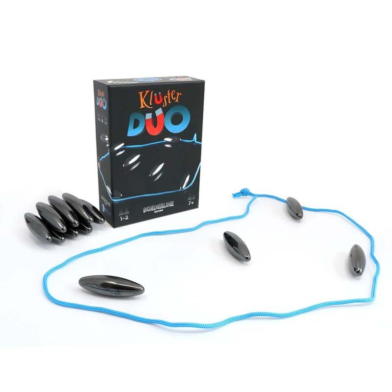 Kluster’s rules can be explain in no time: Magnets are equally shared between players, who must, in turn, place one inside the area of the cord. The first player to get rid of his or her magnets wins. But beware, when magnets kluster together during one player’s turn, he or she collects them!