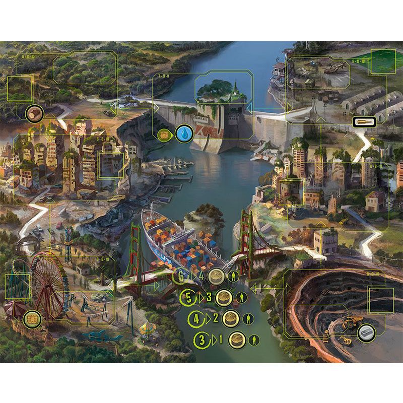 During the night phase, you manage your shelter, feed your survivors and recruit new ones, organize your survival, and improve your rooms and objects.