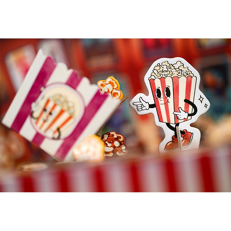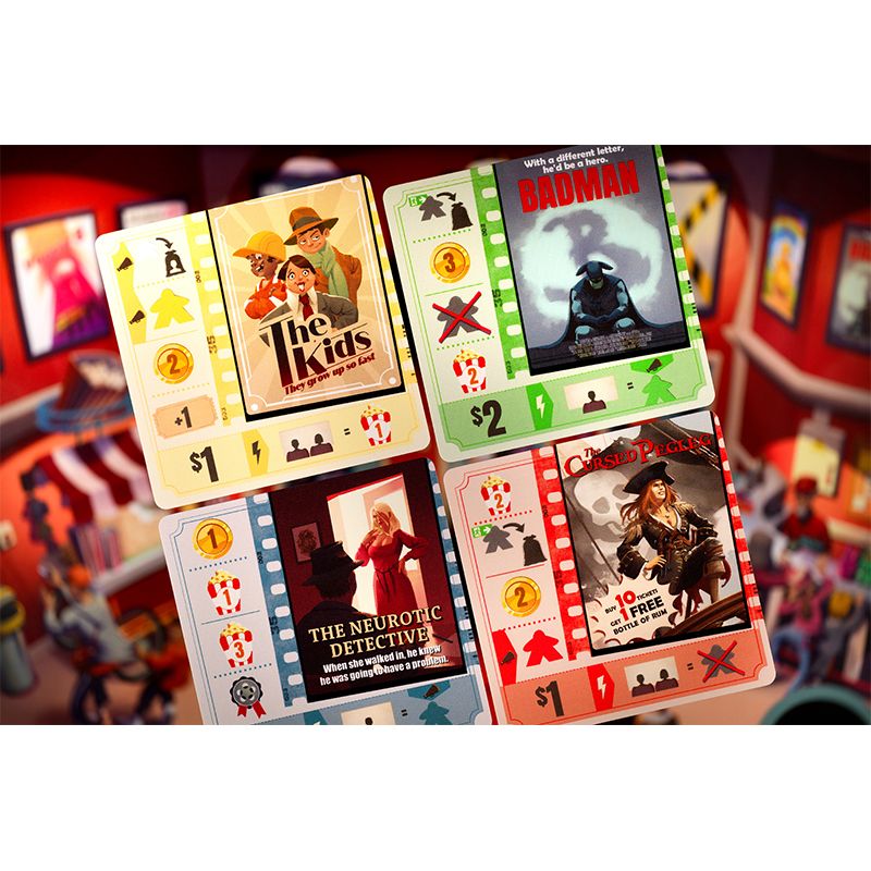 В играта Popcorn всеки играч управлява собствен киносалон и цели да привлече колкото може повече зрители, като програмира качествени филми, модернизира залите си и умело организира прожекциите. Играта се развива в девет кръга, във всеки от които имаш възможност да: закупиш нов филм, построиш/надградиш салон и привлечеш нови гости чрез реклама. След това идва прожекцията — теглиш гостите от торбата, слагаш ги на подходящите места и активираш специални способности.