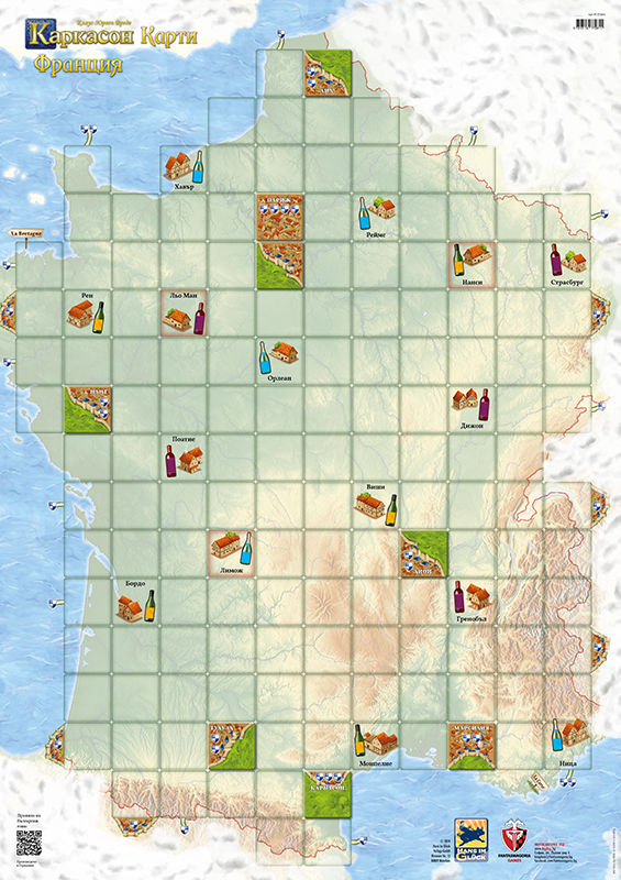 With Carcassonne Maps we offer you a new possibility to play Carcassonne. With Carcassonne Maps: France you can use your tiles and meeples in France, build French cities and influence the course of important roads. There are also new ways to score points, e.g. by winning the scoring of a big city or by connecting streets to neighbouring countries.