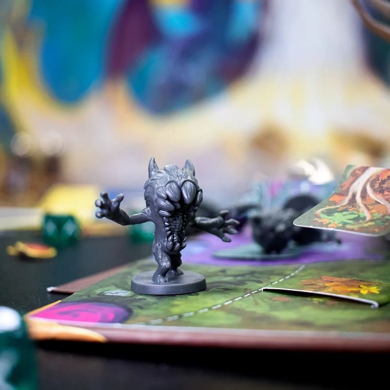 Starting with the first card of the chapter deck, the story unfolds until you reach a goal card. These cards show a goal that must be achieved to proceed and explain how the players' and enemies' turns take place. Each hero can perform three actions per turn, including moving and fighting, using their individual skills, collecting sparks of magic (used to perform special actions), and interacting with cards and pop-ups. Once all heroes have taken their turn, a Wyrm card determines how the enemies will respond by moving, attacking, spawning, or doing something unexpected.