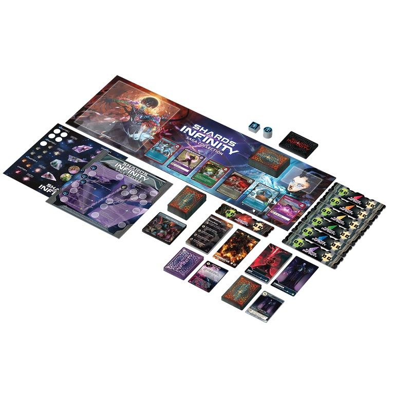 Shards of Infinity: Saga Collection включва базовата игра и всички разширения, както и промоционалните карти от оригиналното издание, заедно с нови и подобрени компоненти. В тази игра играчите трябва стратегически да изграждат своите тестета, да придобиват нови карти и да използват съюзници и шампиони, за да занулят своите противници.