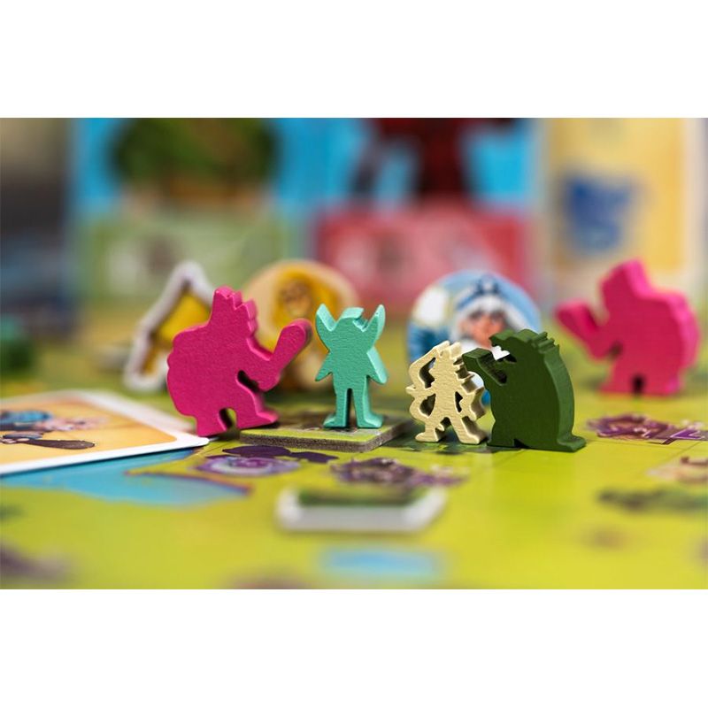 All members of your team of guardians are kept in your bag, each with their own special role and ability. On each round, successively draw your guardians from your bag and use them on your own kingdom board in order to rebuild villages, fight off monsters, free fairies in time, open treasure chests… Each guardian you play allows the next to go further out in the kingdom in order to reach the places you aim, if you plan adequately. Your heroic acts grant you points for the final victory, but also gold to recruit new guardians, building up your bag and refining your strategy.