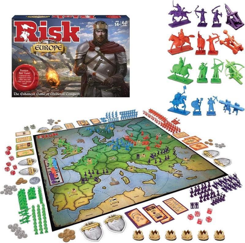 Контролирайте короните, контролирайте Европа в играта Risk Europe - вълнуваща игра за средновековни завоевания. Играта Ви предизвиква да влезете в ролята на средновековен крал и да управлявате феодална Европа, като строите замъци, облагате поданиците си с данъци, разширявате териториите си и влизате в битки. Тази задълбочена игра на стратегия и завоевания предлага на сериозните геймъри първокласно изживяване. Тя включва 4 отделни армии и 7 уникални начални кралства, всяко със свои собствени сили и способности, плюс карти с кралски заповеди, които играят важна роля в стратегията Ви.